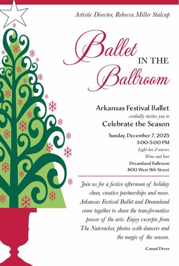 The holiday's are reimagined in the historic Dreamland Ballroom with Arkansas Festival Ballet. Bring your friends and spend time with the AFB dancers at this family friendly event. Purchase tickets in advance or at the door.